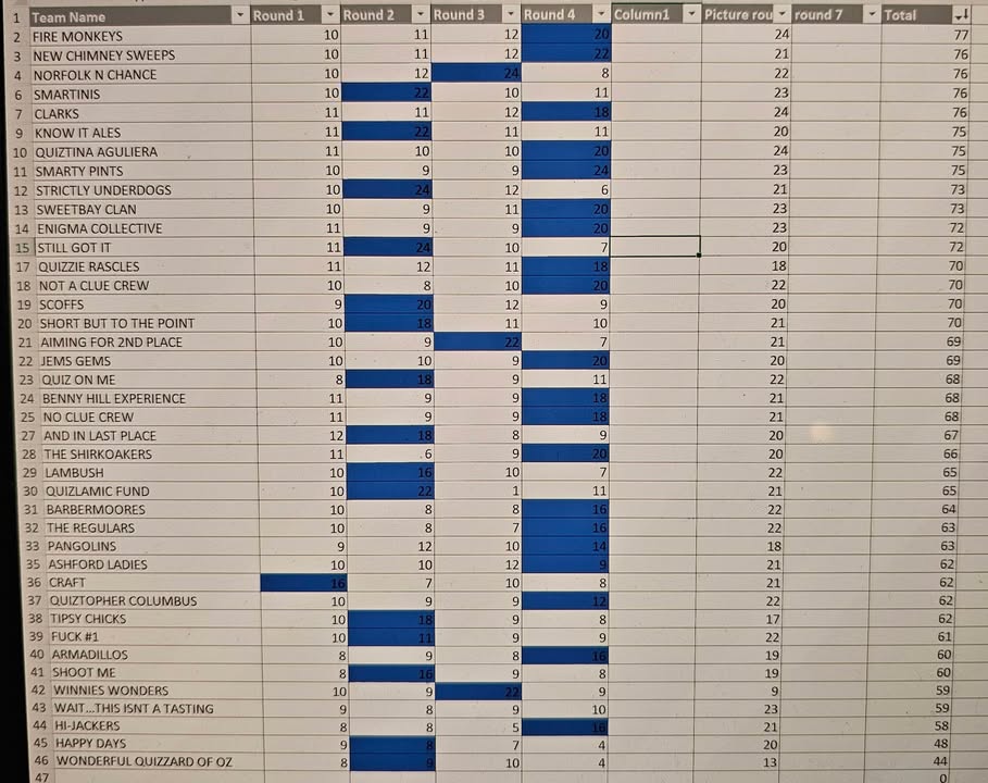 ️❓️QUIZ TIME❓️️ Thursday 30th April - all those who ticked or have messaged me are currently booked in. Can you make us aware of any mobility issues in booking as you may be seated upstairs if we dont know. Please have your full fee on the table ready to be collected at 7.30pm (remember this goes to charity) and be ready and raring to go so we can have a prompt 8pm start. (we can only start on time if you are on time ⏰️) Currently booked (no particular order) #quiznight #QuizTime #friendlyᥫᩣシ #newchimneysashford #whatsoninashford #AshfordPubs #placetobe #quizfun #LoveAshford #community #communitypub #LocalPubVibes #funtimestogether #bestpubintown #greatfoodanddrinks #kentpubs 1. LAMBUSH 2. WINNIES WONDERS 3. ASHFORD LADIES 4. LADY BUGS 5. STRICTLY UNDERDOGS 6. THE KNOW IT ALES 7. NEILS NITWITS 8. QUIZTINA AGUILERA 9. TIPSY CHICKS 10. 11. 12. SHOOT ME 13. ENIGMA COLLECTIVE 14. SWEETBAY CLAN 15. THE CLARKS 16. NORFOLK N CHANCE 17. THE REGULARS 18. CRAFT 19. NOT A CLUE CREW 20. HI-JACKERS 21. QUIZ... FUND... 22. SCOFFS 23. NO CLUE CREW 24. QUIZEE RASCALS 25. HAPPY DAYS 26. SHORT BUT TO THE POINT 27. QUIZ ON ME 28. HARVEY 29. FU*K NO 1 30. STILL GOT IT 31. THE BARBERMOORES 32. ARMADILLOS 33. PANGOLINS 34. SMARTY PINTS 35. AIMING FOR 2nd PLACE POSSIBLY FULL